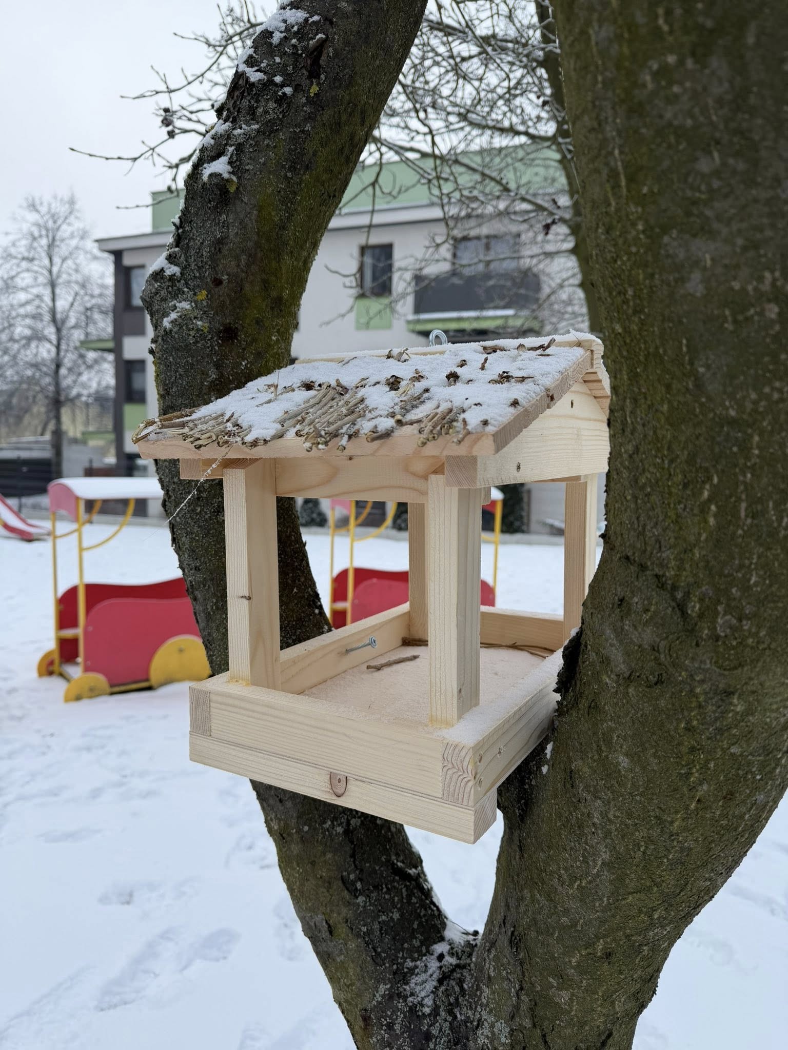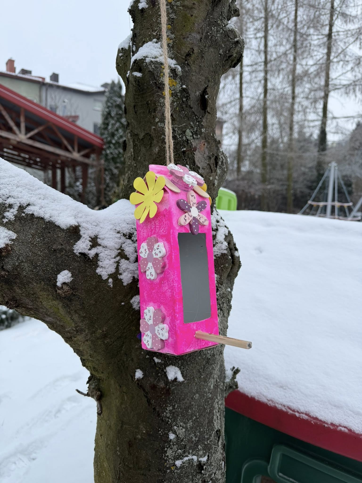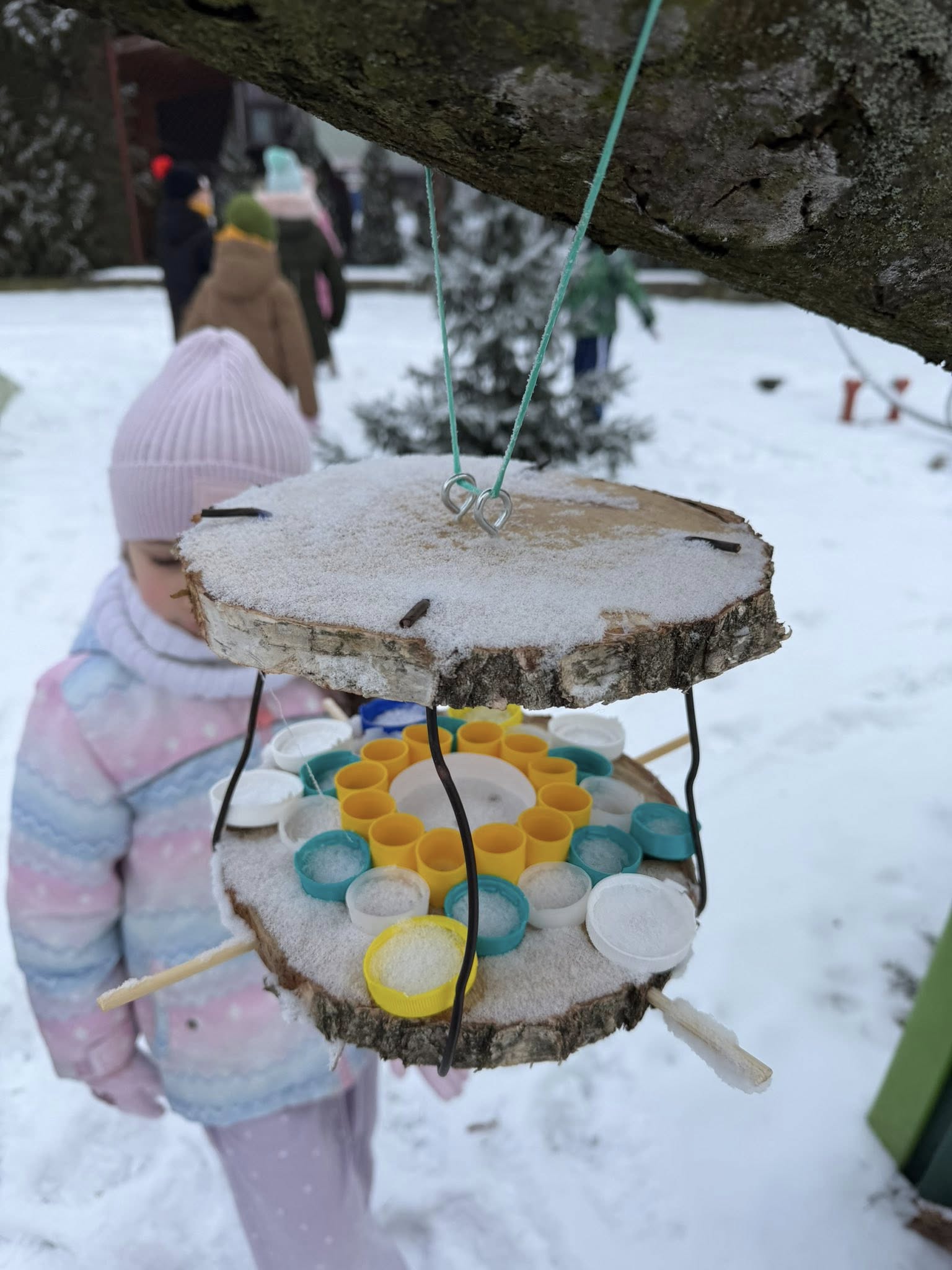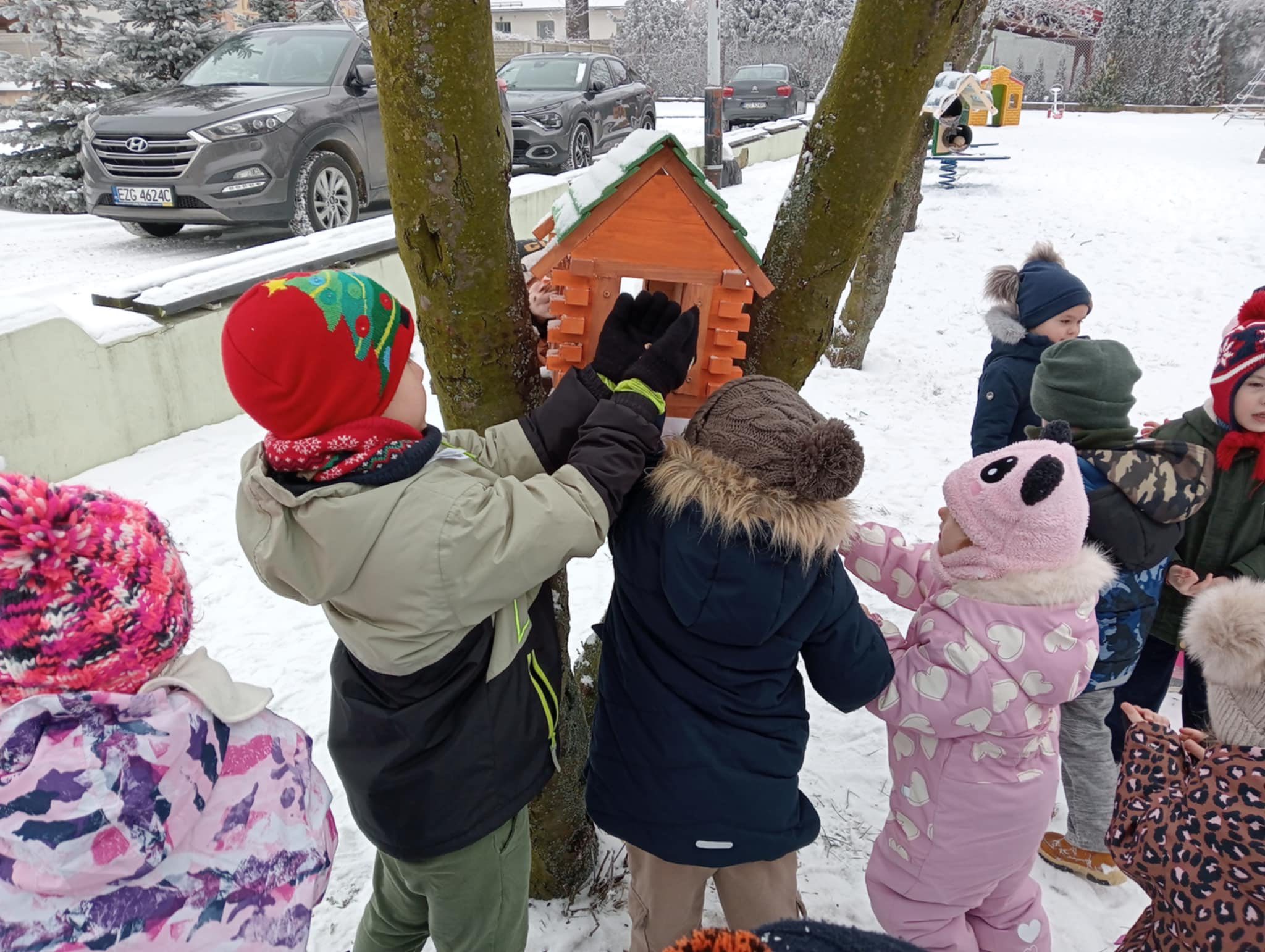 Część karmników została już zawieszona w naszym przedszkolnym ogrodzie, a niektóre zamocowaliśmy na parapetach, dzięki czemu dzieci mogą obserwować ptaki bezpośrednio ze swoich sal. To wspaniała lekcja bliskości z naturą i troski o środowisko