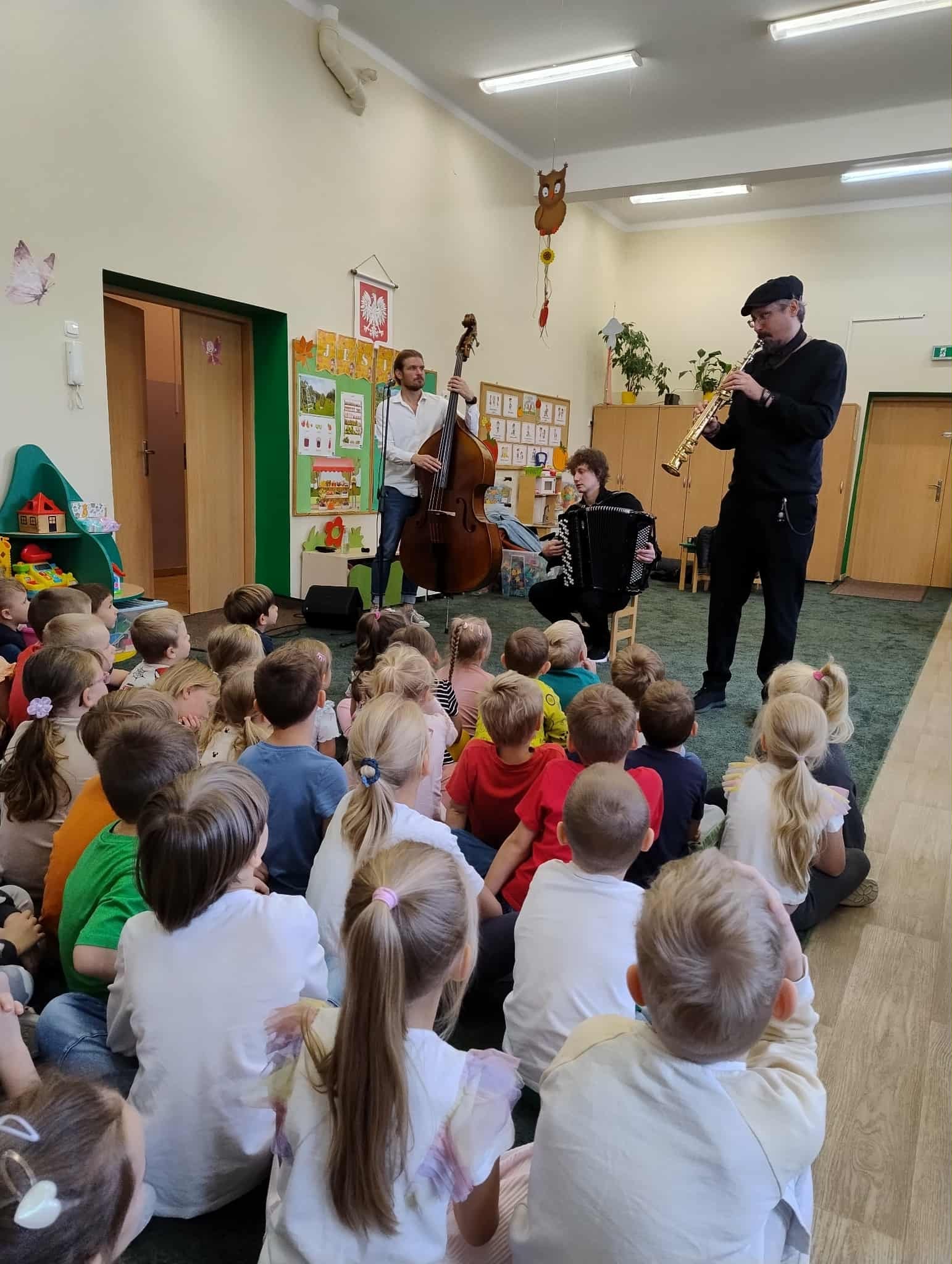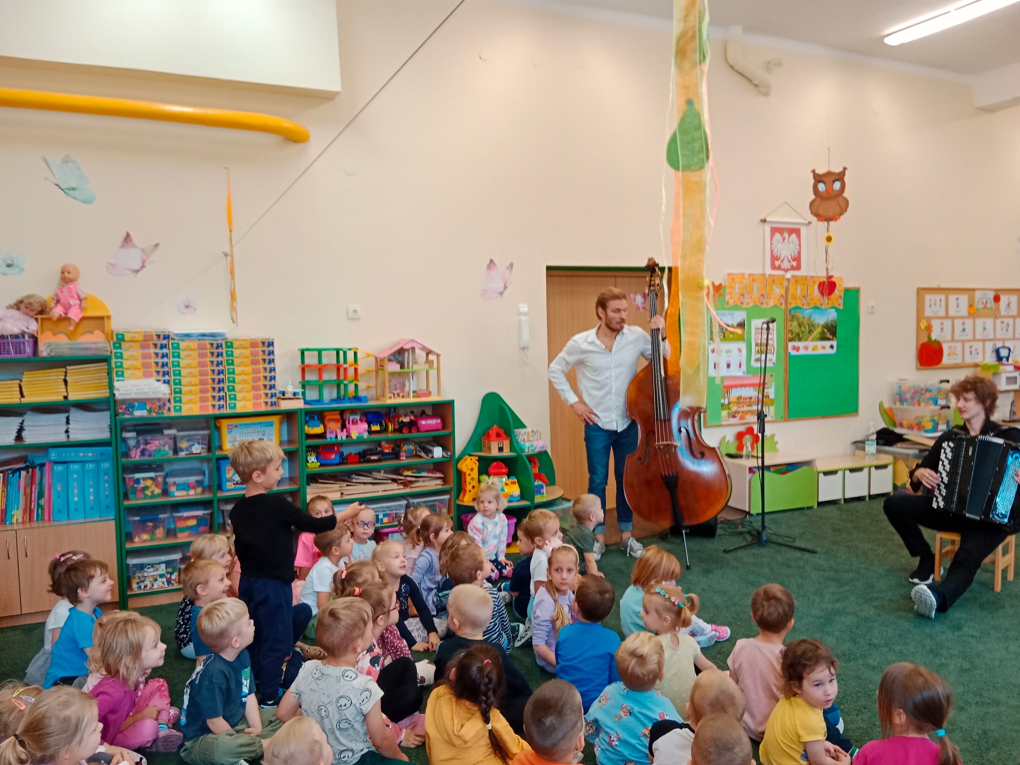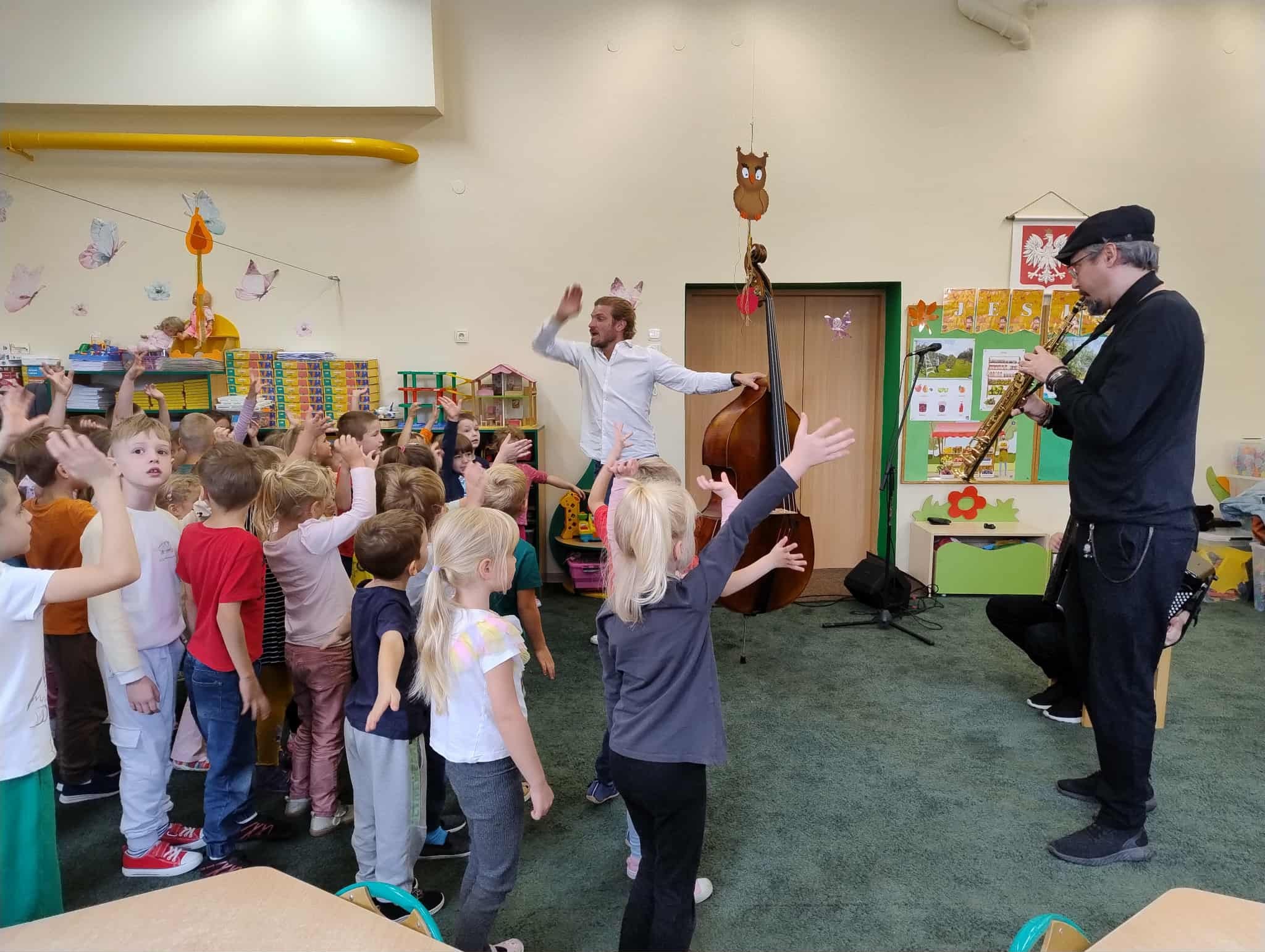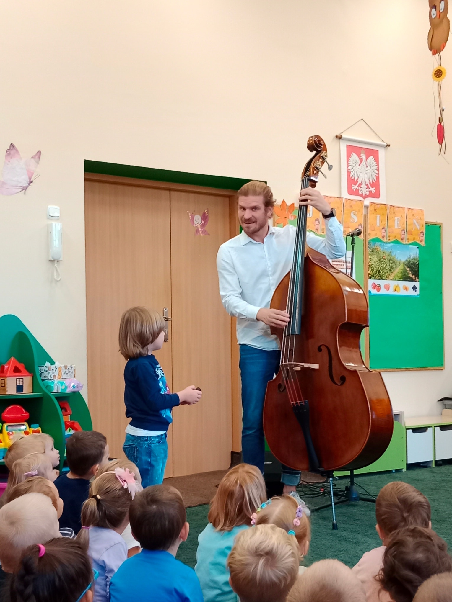 Podczas koncertu muzycznego pt. "Zwariowane melodie" dzieci śpiewały, ilustrowały muzykę ruchem oraz poznały instrumenty takie jak kontrabas, akordeon i saksofon.