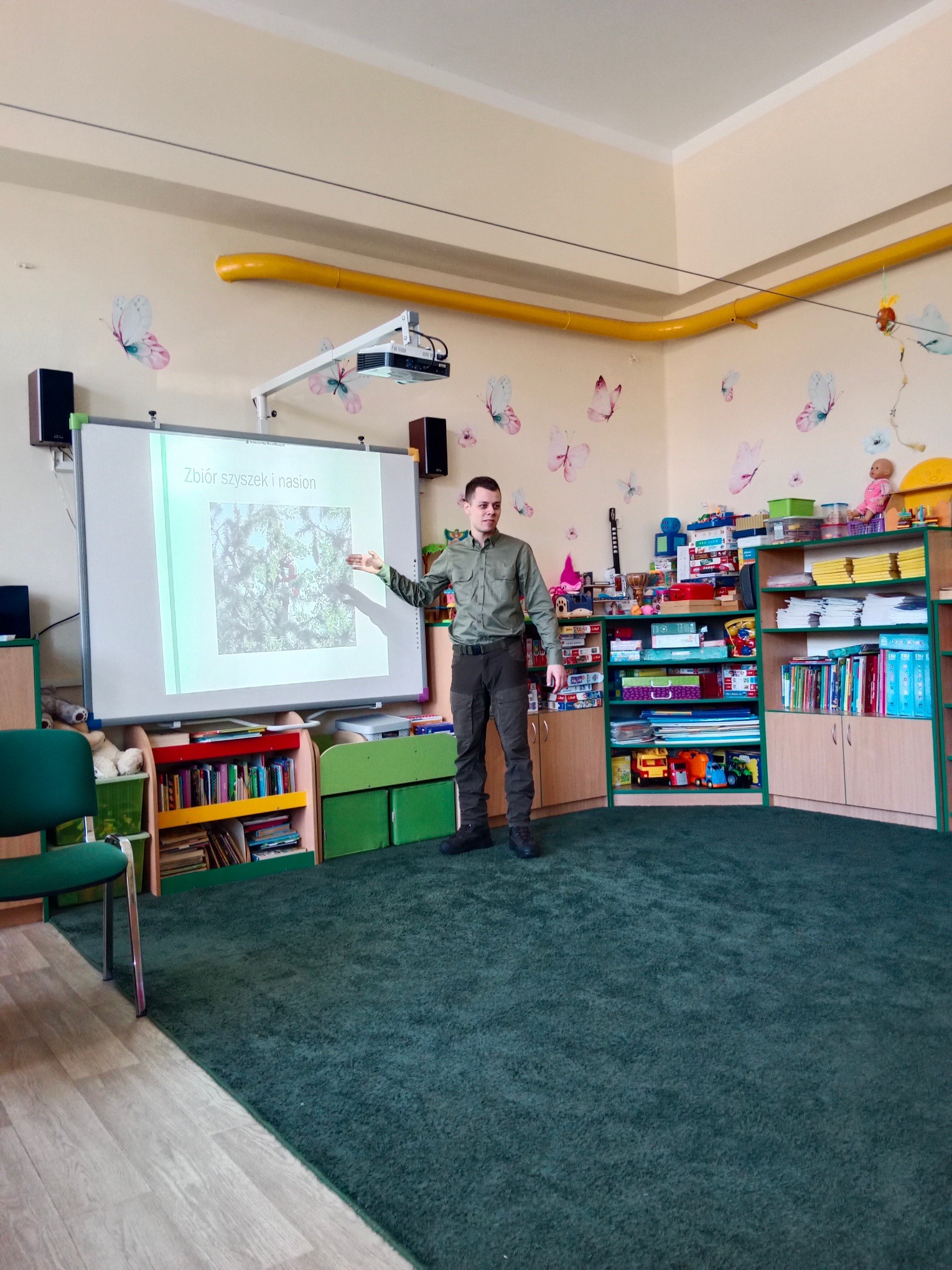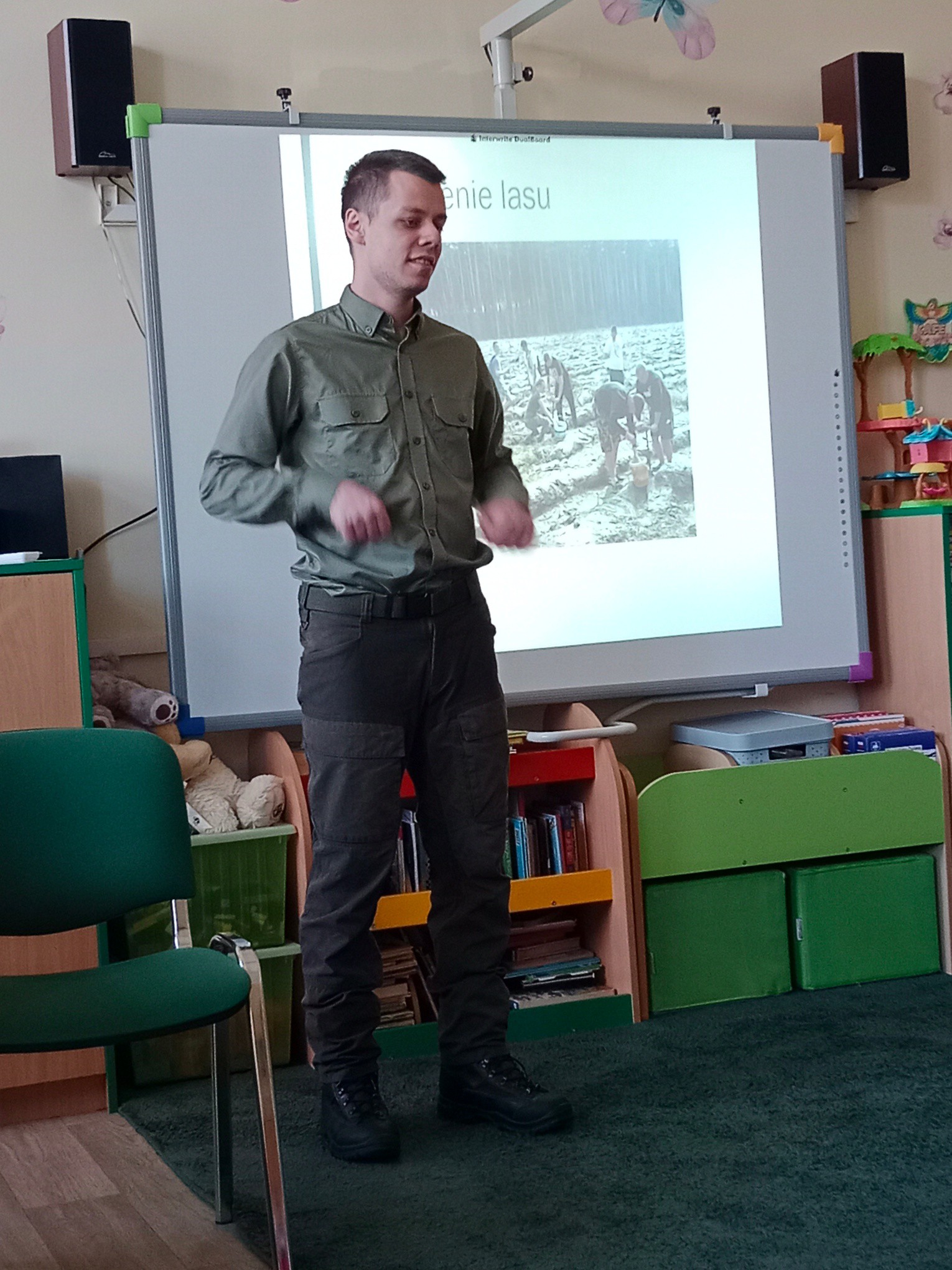 Dzisiaj w naszym przedszkolu odbyło się edukacyjne spotkanie na temat mieszkańców lasu, roli lasu, pracy leśnika oraz zasad bezpieczeństwa i ochrony przyrody.