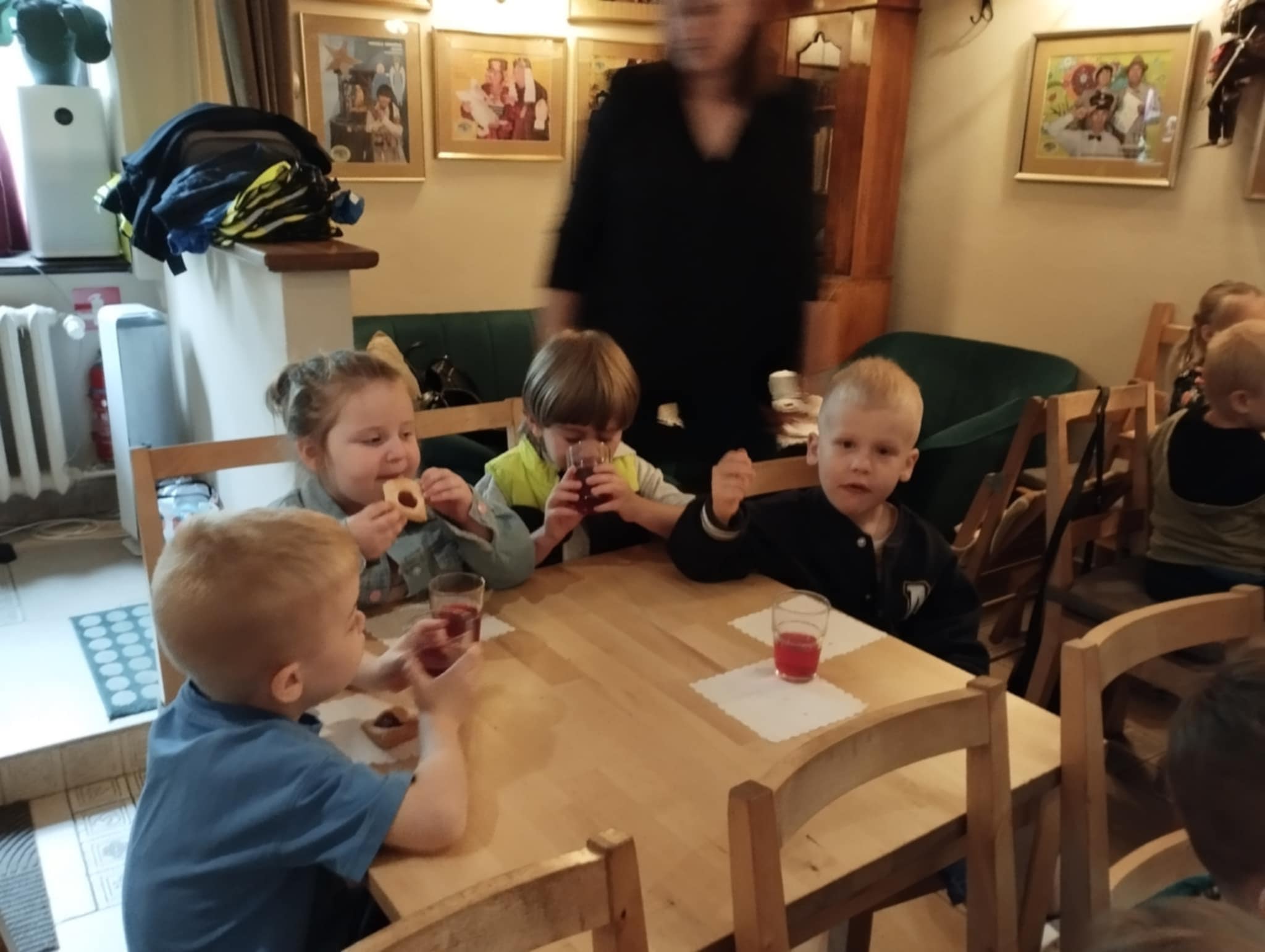 Dziś tym pięknym żółtym autobusem nasze przedszkolaki z najmłodszych grup - I i VI wybrały się do Baśniowej Kawiarenki na przedstawienie pt. „Czerwony Kapturek”.