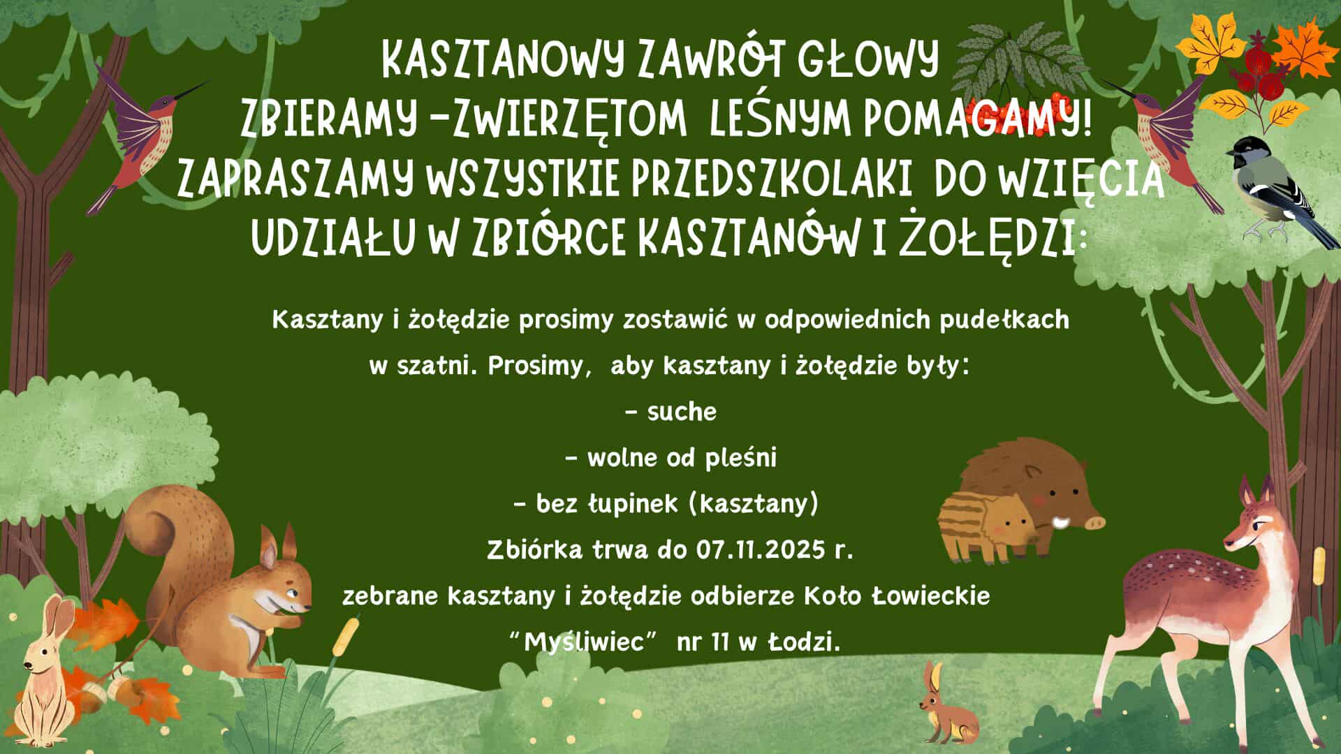 Zachęcamy do wzięcia udziału w zbiórce kasztanów i żołędzi, a tym samym w pomocy leśnym zwierzakom!